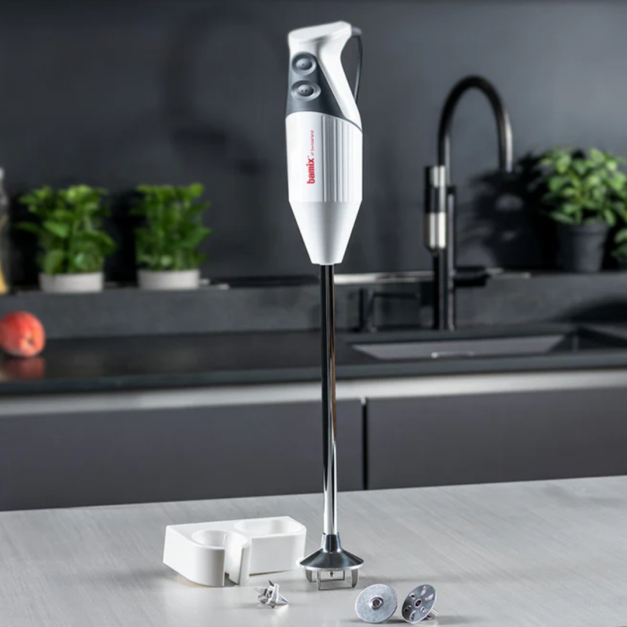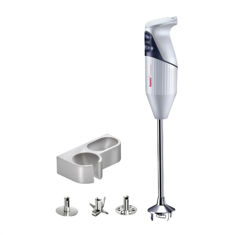Professional performance in a standard size for the professional chef or the experienced amateur cook. Don't let its size fool you: The bamix® Pro-1 is just as suited to the rigors of the commercial kitchen as it is to the experienced hobby chef. It features a 150W AC-Motor and two powerful speed settings and 3 stainless steel attachments. The practical wall holder offers space for attachments and the bamix® is always at hand.